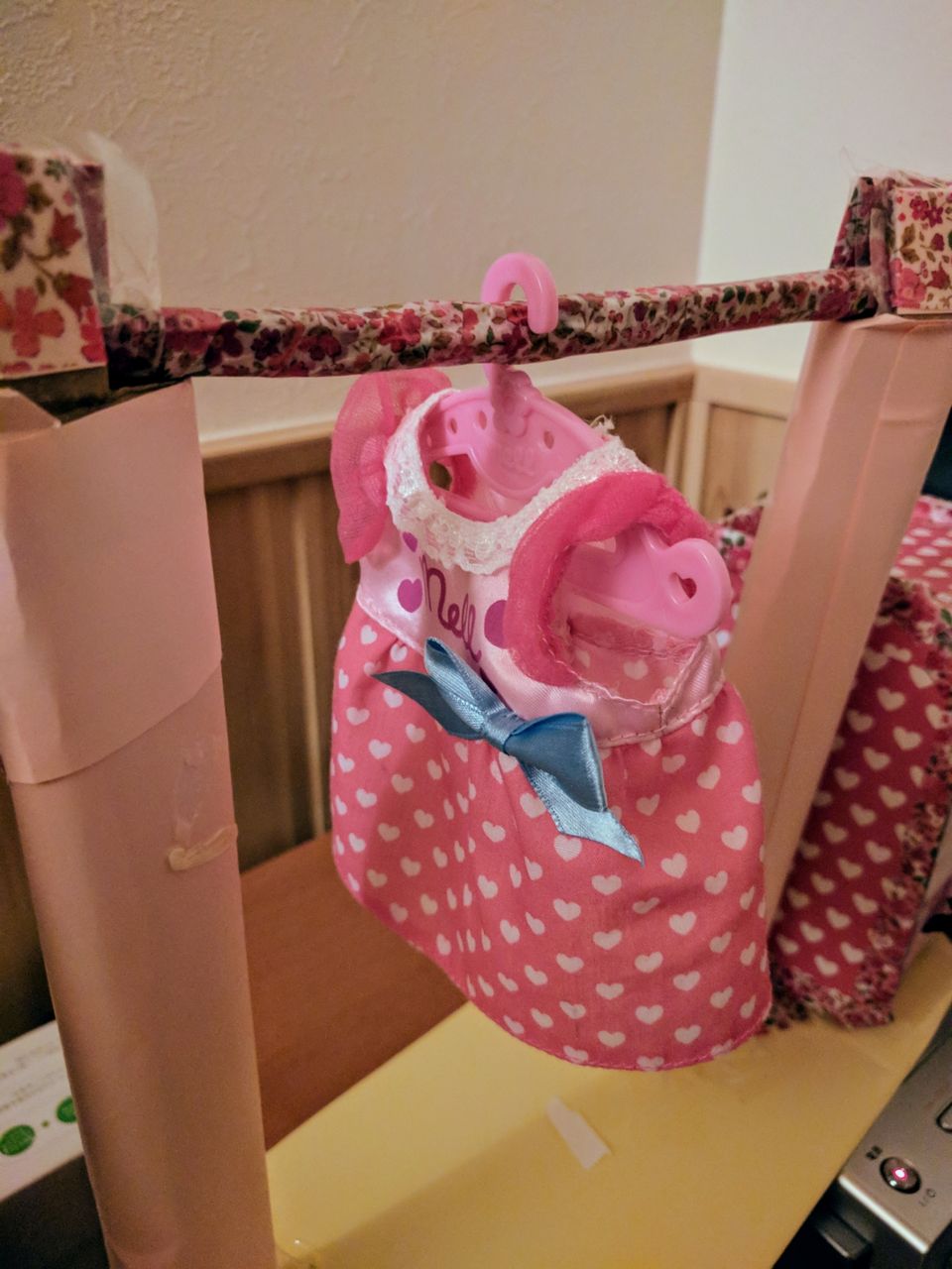 まずは、家にあるもので作ったメルちゃん人形のお洋服のお片付け場所として、